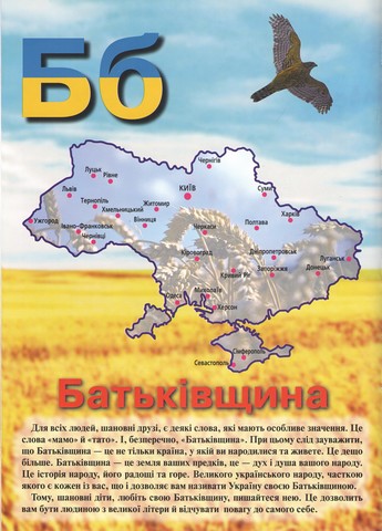 Назви зображує суть вмісту абетки, в основі якого лежить роз'язування дітям віком від 6 до 8 років, з одного боку, основ державності України. З іншого — духів і моральної сторони життя українського народу, що дає змогу називати Україну цимилізованим, сильним, європейською державою, а український народ — великим рейхом. Одним словом, в абетці розповідається для дітей зазначеного віку, що таке «З» «Закон», «Ф» «Флаг» і «Г» «Гімн». І навіть, що являє собою «Е» «Економіка», «К» Конституцезія, «У» «Уряд» і «П» «Перезидент». І все це під час пояснювання того, що означає для українського народу такі слова, як «Б» «Батьківщина», «Є» «денність», «Ш» «Ш» «Шана», «Ч» «Чість» тощо. І все це, уявіть собі, для діточок шестирічного віку, з питаннями, що витікають із цього питання, гідних найгрітішої уваги.