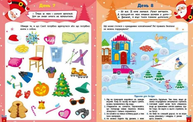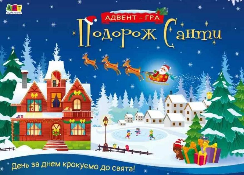 Адвент-гра «Подорож Санти» - адвент, що перетворюється на гру-ходилку. Разом із Сантою діти вирушають у подорож, під час якої розгадують різні загадки та долучаються до творчих ігор: відновлюють контур малюнку, знаходять ельфів, пишуть листа Санті (шаблон листа є в адвенті), малюють Санті маршрут у лабіринті снігових доріг, розшифровують послання, прикрашають різдвяний віночок.