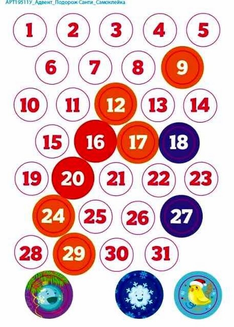 Адвент містить 31 різну активність та стільки ж наліпок-дат. День за днем крокуємо до свята!