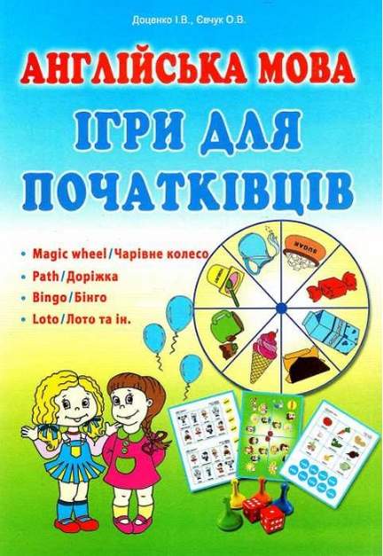Англійська мова Ігри для початківців Доценко І. Абетка. Комплект "Англійська мова. Ігри для початківців" створений для дітей віком дошкільного та молодшого шкільного віку з метою навчання англійської мови у дитячих садках, початковій школі , центрах дитячої творчості, гуртках раннього розвитку дитини, індивідуального навчання малюків вдома.