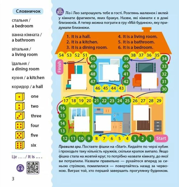 - Аудіосупровід: Книга супроводжується аудіоматеріалами, що дозволяють дітям слухати вимову англійських слів та фраз. Це сприяє вивченню мови в автентичному мовному середовищі.