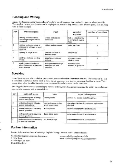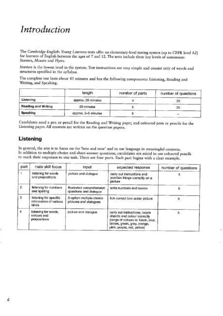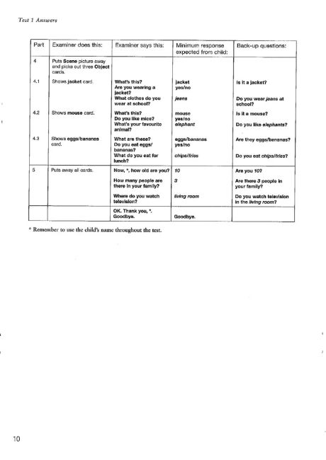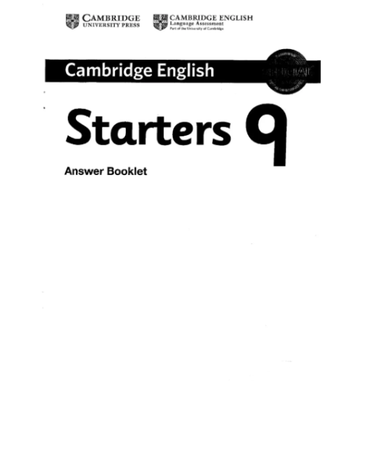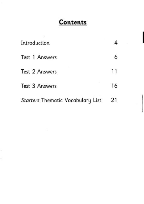 Три повні роботи для кожного з іспитів з англійської мови для молодших учнів Кембриджу (Starters, Movers та Flyers). Зошит відповідей супроводжує Кембриджський іспит з англійської мови для молодших учнів 9 класу, Початковий рівень (Starters), а також Підручник та аудіо-CD для студентів. Зошит відповідей містить відповіді на всі три тести Початкового рівня, текстові матеріали для аудіо записів та приклади типу діалогів, які можна очікувати на тесті Speaking. Також він містить список словникового запасу Початкового рівня англійської мови Кембриджу, організований за темами. Аудіо-CD для Початкового рівня (яке містить аудіо-фрагменти тестів) та Підручник для студентів Початкового рівня доступні окремо.