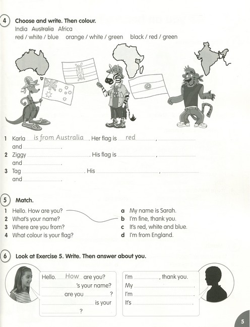 Задания побуждают детей к общению на изучаемом языке. Накопление лексического материала и усвоение грамматики происходит быстро и легко. Особое внимание уделяется формированию навыков правильного произношения, а также изучению букв и звуков. Ознакомление с алфавитом происходит параллельно с обучением письму.