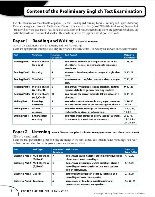 "Objective PET Second edition" - це повністю оновлена та переглянута версія найпопулярнішого курсу "Objective PET". Це видання містить кілька чудових нововведень, зокрема нові "Корпусні місця", які попереджають студентів про поширені помилки, які роблять кандидати на PET. У книзі для студентів тепер є CD-ROM для додаткової практики мови, включаючи один повний друкований практичний тест PET. На супровідному веб-сайті є додатковий друкований практичний тест PET. Цей комплект містить Книгу для студентів з CD-ROM та Посібник з практичними тестами PET для шкіл без відповідей. Також доступні Посібник для вчителя, Робочі зошити та набір з трьох аудіо-CD.