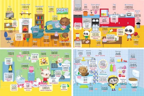 Ця книга містить багато яскравих та зрозумілих ілюстрацій, які допомагають засвоювати нові слова та їх значення. Кожне слово супроводжується зображенням, що полегшує зрозуміння та запам'ятовування вивчених термінів.