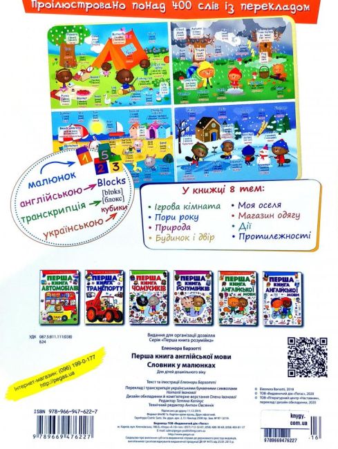 "Перша книга англійської мови. Словник у малюнках (зелений)" від Елеонори Барзотті, видавництва "Пегас", є навчальним посібником для початківців у вивченні англійської мови.