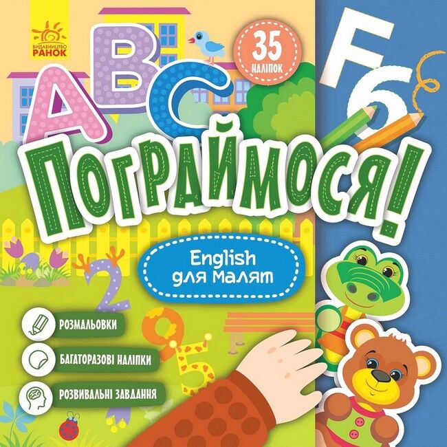 "Пограймося! English для малят" - це чудовий розмальовник з багаторазовими наліпками та розвивальними завданнями, призначений для найменших дітей. Видавництво: Кенгуру.