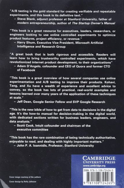 "Kohavi, Tang and Xu have a wealth of experience and excellent advice to convey, so the book has lots of practical real world examples and lessons learned over many years of the application of these techniques at scale." - Jeff Dean, Google Senior Fellow, and SVP, Google Research