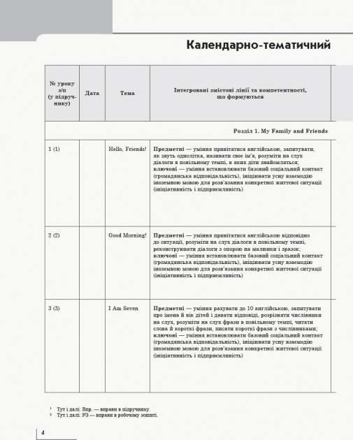 Календарно-тематичний план, укладений до підручника англійської мови, відповідає чинним типовим освітнім програмам з іноземних мов для закладів загальної середньої освіти, затвердженим Міністерством освіти і науки України, й передбачає використання відповідного навчально-методичного комплекту. Посібник укладено за принципами концепції Нової української школи, він ґрунтується на особистісно зорієнтованому й компетентнісному підходах до навчання.