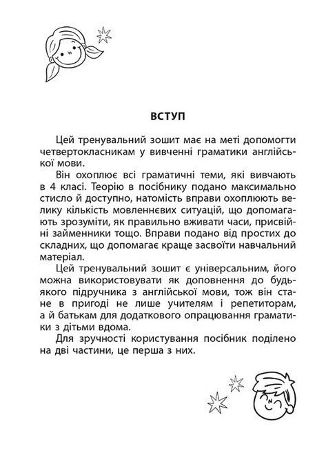 Робота із цим тренувальним зошитом дає змогу закласти базові знання, необхідні для опанування письма англійською мовою, а запропонований обсяг завдань допоможе удосконалити деякі навички та довести їх до автоматизму.