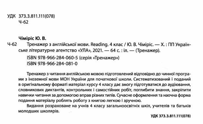Тренажер з англійської мови Reading 4 клас Чіміріс Ю. УЛА