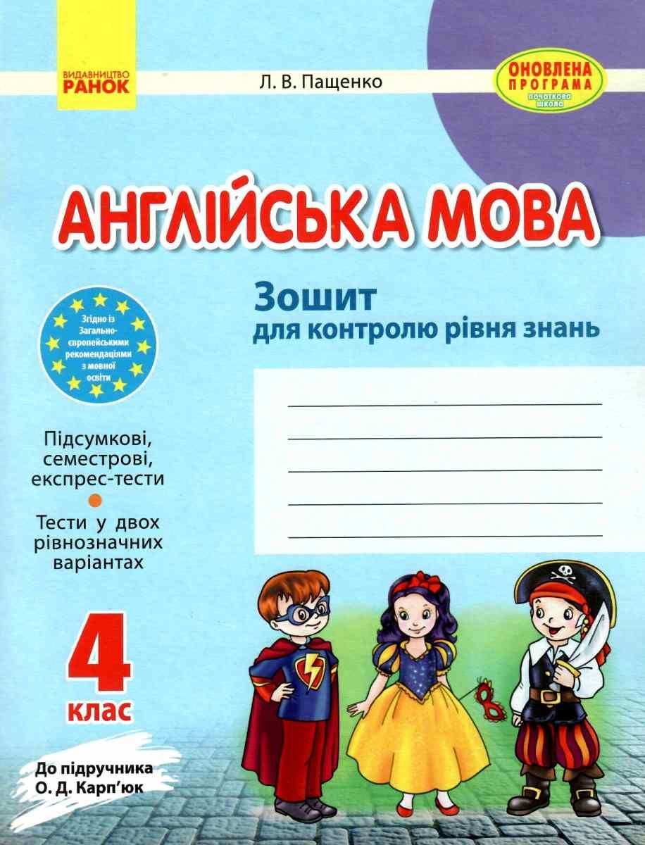 Замовляйте зошит для контролю рівня знань з англійської мови 4 клас до підручника Карпюк Пащенко Ранок на нашому сайті knigovo.org.ua за доступною ціною та отримуйте зручну доставку по всій Україні!