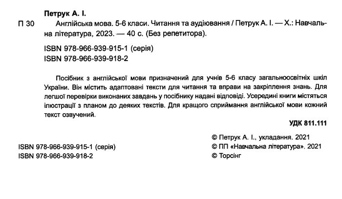 Англійська мова без репетитора 5-6 класи Читання Аудіювання Торсінг