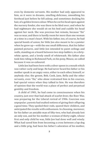 The Forsyte Saga brought the English writer John Galsworthy (1867–1933) world fame and the Nobel Prize in Literature. In the pragmatic world of the Forsytes, neither romantic passions nor full-blooded feelings are recognized. The Forsytes are respectable bourgeois whose lives are completely subordinated to proprietary interests, which form the basis of their well-being and power. But their world can turn into chaos when someone starts listening to their heart and chooses the path to happiness. The second volume includes the novel To Let.