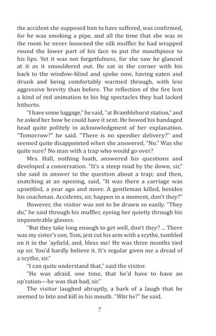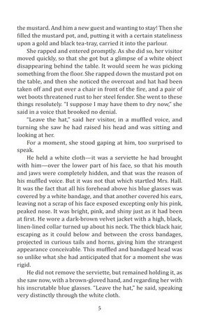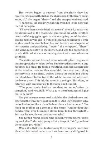 The Invisible Man is a science fiction novel by the English writer H. G. Wells (1866–1946). A stranger appeared in an English village during a snowstorm. No one saw his face, it was hidden under medical bandages. But one day a stranger took off the bandages and... he was left without a head!