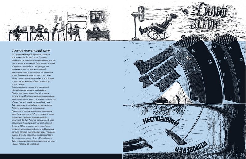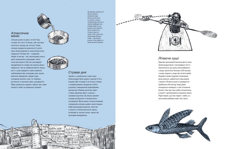 Разом із мореплавцем ви потрапите у бурі та шторми в океані, зіткнетеся з найбільшою течією у світі. Дізнаєтеся, як спланувати трансатлантичну експедицію, побудувати каяк та не загубитися в океані. Довідаєтеся, чи існують підводні гори, кораблі-привиди, а ще – де на каяку приховані спальня, кухня та ванна кімната. Навіть пізнаєте смак океанської кави!