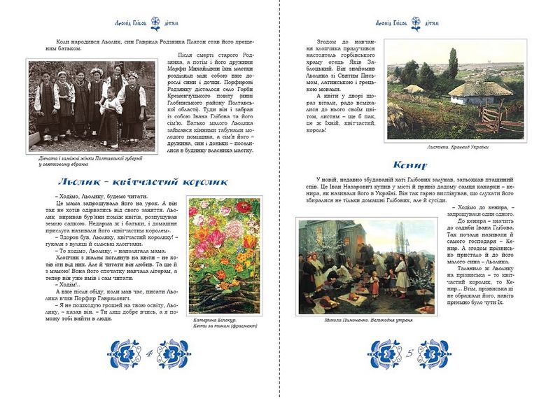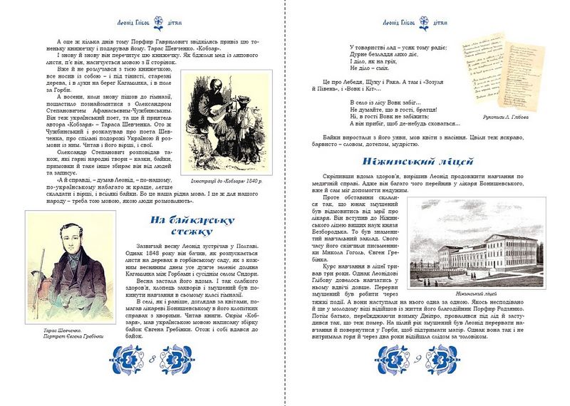 У цій книзі діти мають змогу дізнатись багато цікавих фактів про життя та творчість українського письменника, поета, байкаря, видавця та громадського діяча - Леоніда Глібова. Крім цього, книга багато проілюстрована світлинами, ілюстраціями, документами і рукописами письменника, що дозволить читачам глибше зануритись в поетичний світ автора. Книга адресована дітям молодшого та середнього шкільного віку.