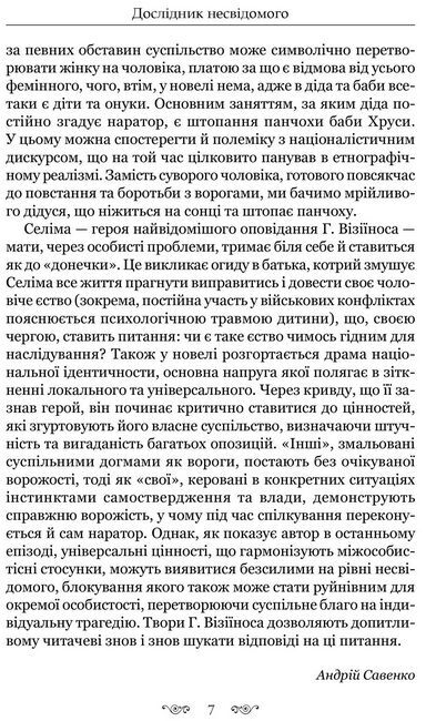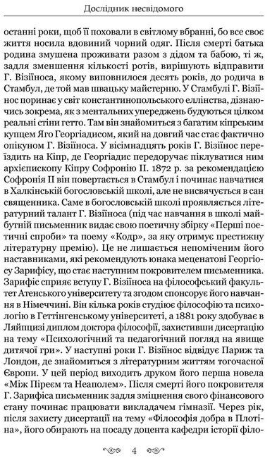 Антологія малої новогрецької прози представляє увазі українського читача постаті трьох найважливіших новогрецьких авторів, які творили в другій половині ХІХ ст. та на початку ХХ ст. і заклали фундамент для розвитку грецької літератури у ХХ ст. Герої їхніх творів проходять непростий шлях прийняття нових обставин життя, народження нових ідентичностей, зламу стереотипів, кризи традиції. Вони намагаються віднайти в собі світло, яке вказуватиме їм потрібний шлях, живе джерело, яке наснажуватиме їхні сили. Книга розрахована на широке коло читачів, насамперед тих, хто хоче познайомитися з культурним простором Греції за межами традиційного поля античності.