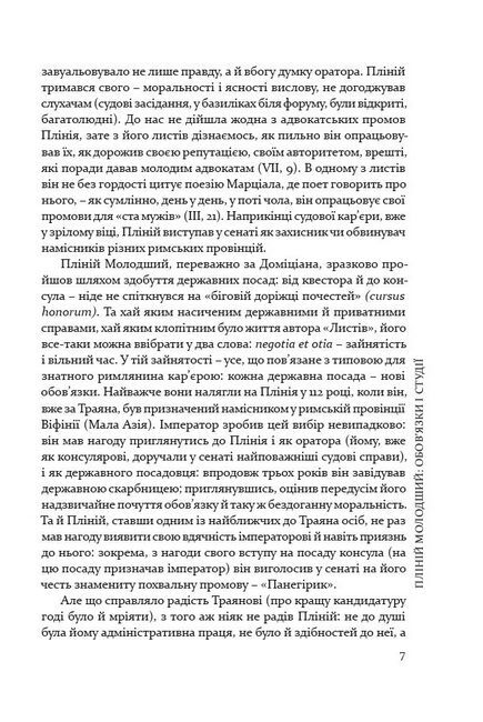 Із «Листів» письменника і суспільного діяча Плінія Молодшого, стилістично довершених текстів, зразків високохудожньої інтелектуальної прози, проступає непересічна, глибоко гуманна особистість їхнього автора на тлі доби: маємо живе уявлення про матеріальне і духовне життя освічених верств тодішнього суспільства; тут – єдиний, що зберігся з тих часів, яскравий опис виверження Везувію в 79 році, а також, у листах до Траяна, важливі свідчення про ранніх християн. Подані листи, за винятком опису виверження Везувію, українською мовою перекладено вперше.