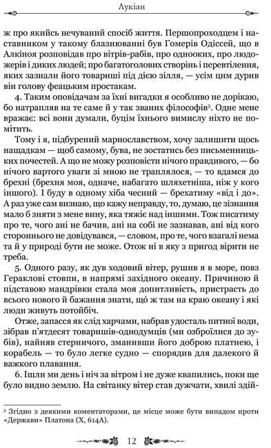 Серед тих, хто століттями вчить Європу сміятися й висміювати, уявляти й сумніватися, Лукіан Самосатський (бл. 120 р. — після 180 р.) — на чільному місці. Хтозна, чи написав би Томас Мор «Утопію», а Джонатан Свіфт — «Мандри Гуллівера», якби свого часу не надихнула їх Лукіанова «Правдива історія». Античність майже не залишила згадок про життя цього автора (хіба що скупі й геть не надійні автобіографічні свідчення), однак чудово зберегла його оповідання й діалоги, за якими — гострий розум, дивовижна ерудованість, жвава й невтомна уява, наснажена кінічним імпульсом. Крім «Правдивої історії», мабуть, найвідомішого Лукіанового твору, до видання увійшли діалоги, які суттєво доповнюють письменницький портрет, — «Двічі обвинувачений» і «Нахлібник».