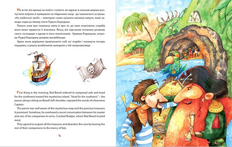 Це казкова історія про піратів, що кличе дітей та дорослих у захопливий світ мандрів. Ласкаво просимо усіх поринути у безмежні обрії незвіданих островів та океанів і лише на краю світу дізнатися, хто насправді здобуде найголовніше, а хто втратить усе. Надзвичайно жвава пригодницька оповідка змусить юних читачів та їхніх батьків гортати сторінка за сторінкою. Тут немає нічого зайвого, лише несамовиті пригоди улюблених героїв, чудові малюнки та вишукані українська і англійська мови!