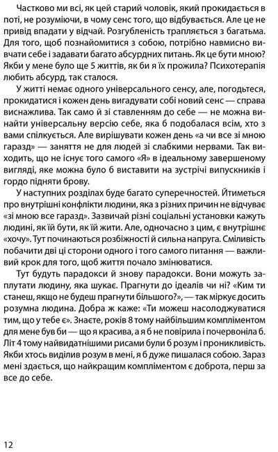 Ця книга про те, як розвіяти ілюзії минулого і зменшити страх майбутнього, як зрозуміти, в чому ваша внутрішня сила і що таке суб’єктивне «зі мною все гаразд». З кожним розділом ви зможете підійти до свого життя з нової стежки і навчитися пред’являти більш адекватні вимоги до самого себе. Деякі читачі зможуть переосмислити постійне бажання контролювати час, обставини, себе. Деяким ця книга допоможе віднайти приховані сили всередині себе. Адже основне питання книги: «Як зрозуміти, що зі мною все гаразд?».