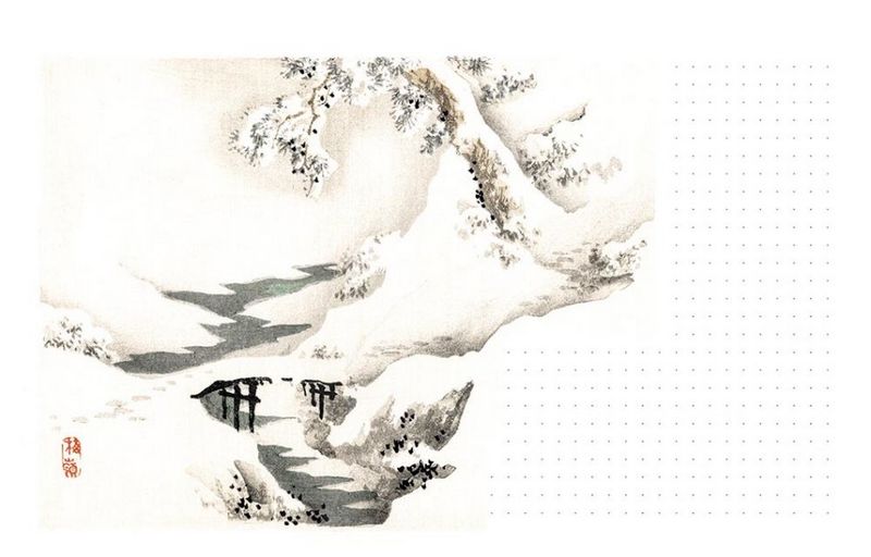 Компактний та зручний блокнот у крапку із зображенням гравюр і фрагментів гравюр японських мистців.