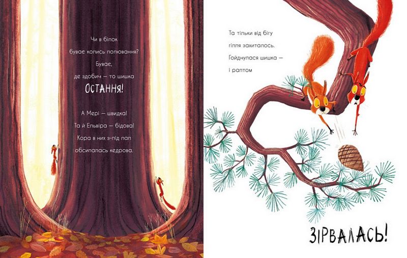 Дві жадібні білки Ельвіра і Мері поклали око на справжній скарб — останню цієї осені кедрову шишку. Ого-го! Починається Велике Змагання! Поки шишка шалено стрибає по лісу, білки мчать за нею між деревами, через валуни, вниз по річці і — прямо до краю водоспаду! Взаємодопомога — єдине, що врятує білок...