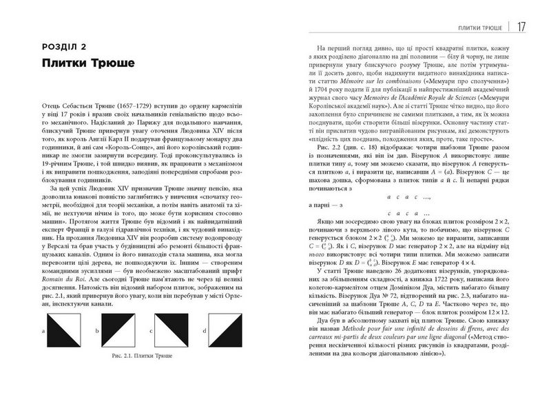 Роберт Бош пропонує цікаве та зрозуміле введення в геометричні, алгебраїчні й алгоритмічні основи оптимізації. Він представляє класичні програми, як-от легендарна проблема комівояжера, і демонструє, як їх адаптувати, щоби створити мистецтво оптимізації — opt art. Кожен розділ у цій чудово ілюстрованій книжці починається з проблеми чи головоломки та демонструє, як можна знайти їх розв’язання за допомогою безлічі художніх методів і засобів масової інформації, зокрема 3D-друку, лазерному різанню та керованій комп’ютером обробці. Автор зосереджується на математичному моделюванні — перетворюючи проблему на дієву математичну форму, розв’язуючи її за допомогою методів оптимізації та досліджуючи результати, які можуть бути мозаїкою, лінійним малюнком і навіть скульптурою. Усе, що вам потрібно, це трохи алгебри, геометрії та обчислення з програми старшої школи.