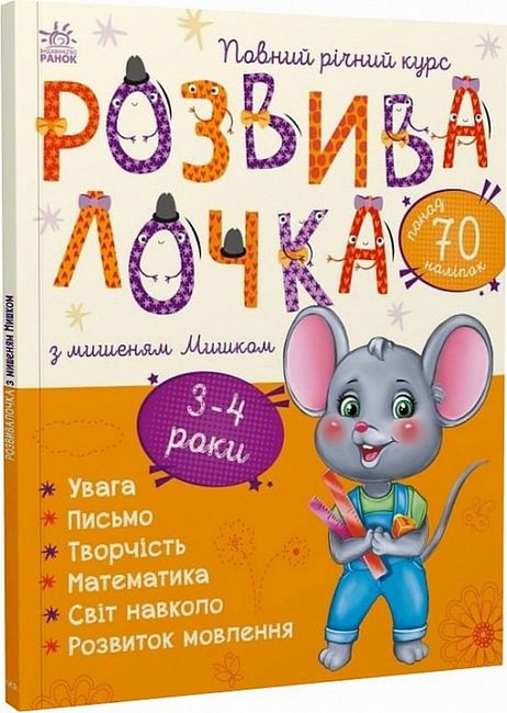 Цей унікальний посібник охоплює найважливіші знання та вміння, якими має володіти дитина у віці 3-4 років. За допомогою ігрових завдань дитина розшире свій словниковий запас, придбає важливі знання про навколишній світ, а також потренує увагу і зможе створити поделки своїми руками.