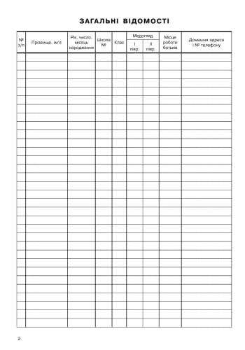 Журнал для обліку групових занять дитячо-юнацької спортивної школи. В журналі ви зможете ввести облік відвідування занять учнями, загальні відомості, навчальний план групи, спотивні заходи і суспільно корисну працю.