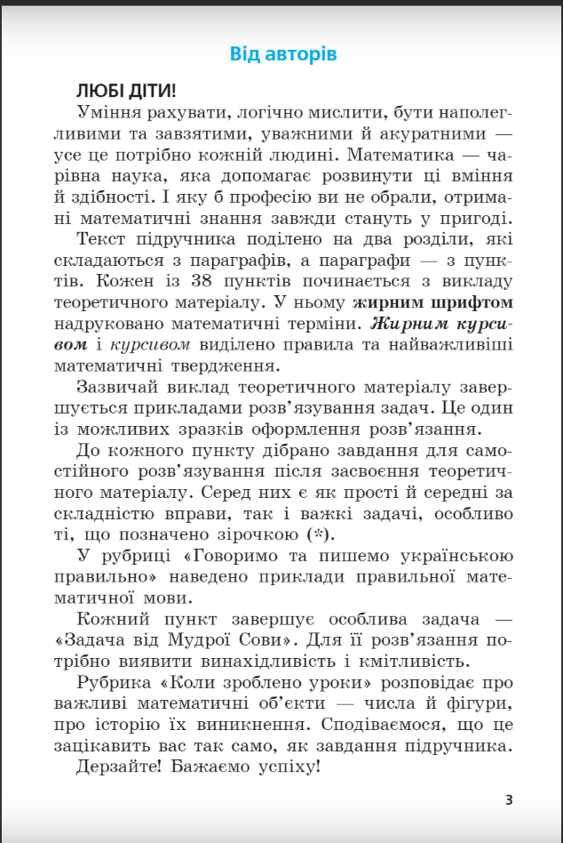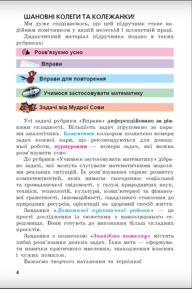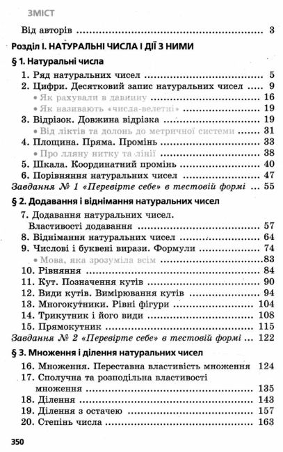У підручнику чітко структуровані теми з математики, що дозволяє учням легко зорієнтуватися в матеріалі. Кожна тема супроводжується відповідними прикладами і задачами, що допомагають закріпити отримані знання і вміння. Окремо слід відзначити візуальний оформлення підручника - кольорові ілюстрації, схеми та таблиці роблять процес вивчення математики більш захоплюючим і динамічним.