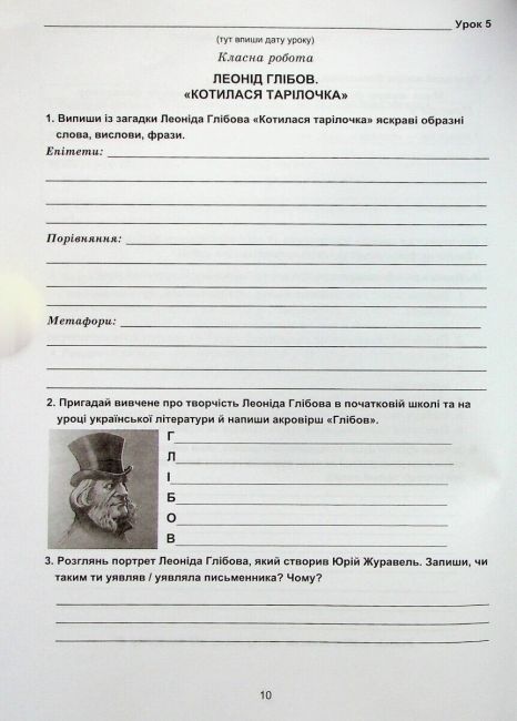 Зошит містить завдання на формування ключових та предметних компетентностей, на розвиток мовлення, виховання креативного читача-патріота. Структура та змістове наповнення робочого зошита сприятимуть удосконаленню та розширенню знань, умінь і компетент ностей учнів / учениць як під час навчання на уроках української літератури в закладах освіти, так і в форматі дистанційному.