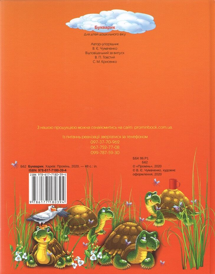Букварик для дітей дошкільного віку з кольоровими ілюстраціями від В.Є. Чумаченка, видавництва "Промінь" - це чудовий посібник для ознайомлення малят із буквами та початковим читанням.