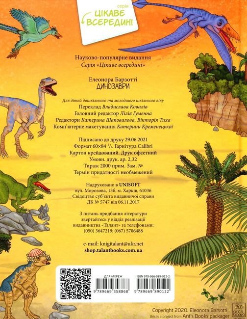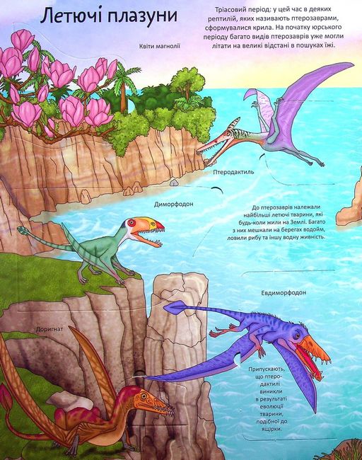 Що ми знаємо про динозаврів? Дізнайся цікаві факти про древніх ящерів, що жили на нашій планеті мільйони років тому: летючих рептилій і морських чудовиськ, моторошних хижаків і рослиноїдних гігантів. Приготуйся до захопливої подорожі в доісторичний світ!