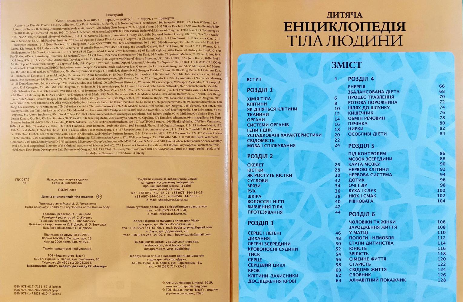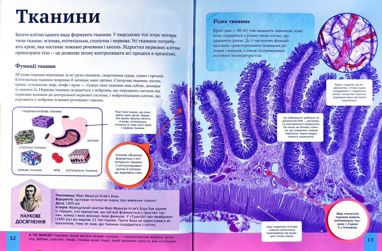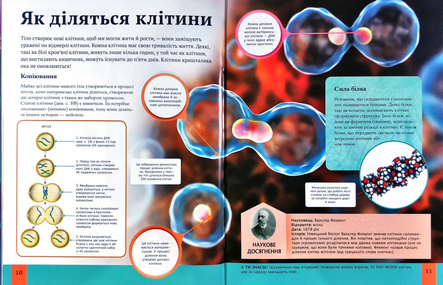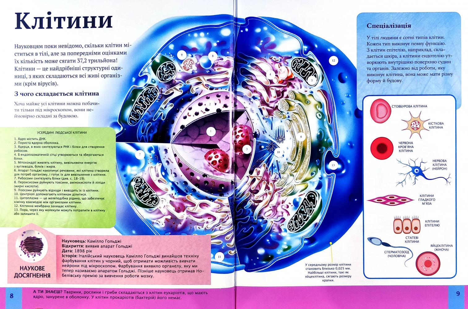 Ця корисна енциклопедія стане у пригоді допитливим дітлахам, адже відкриє найцікавіші таємниці людського тіла — від найдрібніших елементів клітини до тканин і систем органів.
