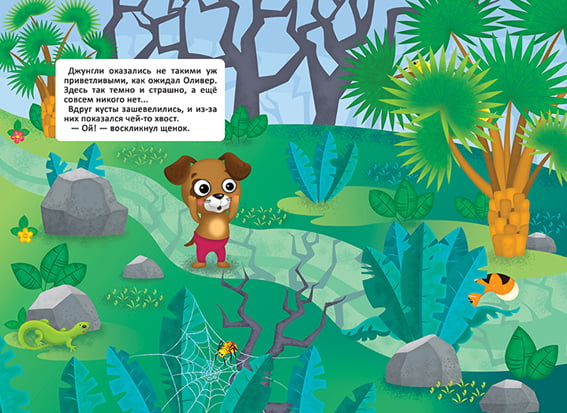 Предлагаем вашему вниманию книжку с секретными окошками "Веселые приключения щенка Оливера в джунглях".