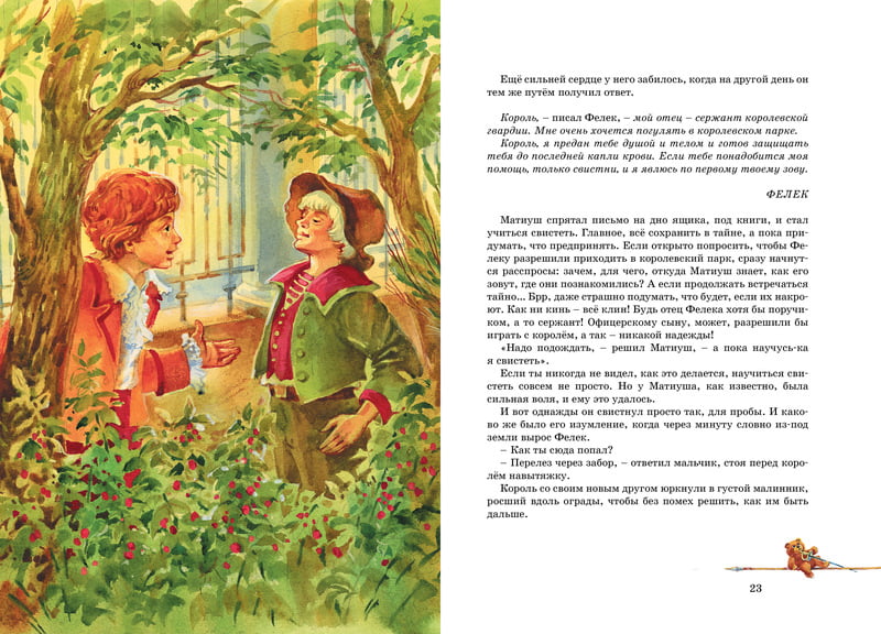 Одно из самых известных произведений писателя – повесть-сказка «Король Матиуш Первый». Это история юного Матиуша, который, рано потеряв родителей, вынужден был занять трон короля. Чувствуя ответственность перед своим народом, Матиуш, добрый и отзывчивый мальчик, всем сердцем хотел сделать жизнь людей в своём королевстве лучше. И прежде всего он думал о детях. Но сколько трудностей и разочарований ждало его на этом нелёгком, но благородном пути!