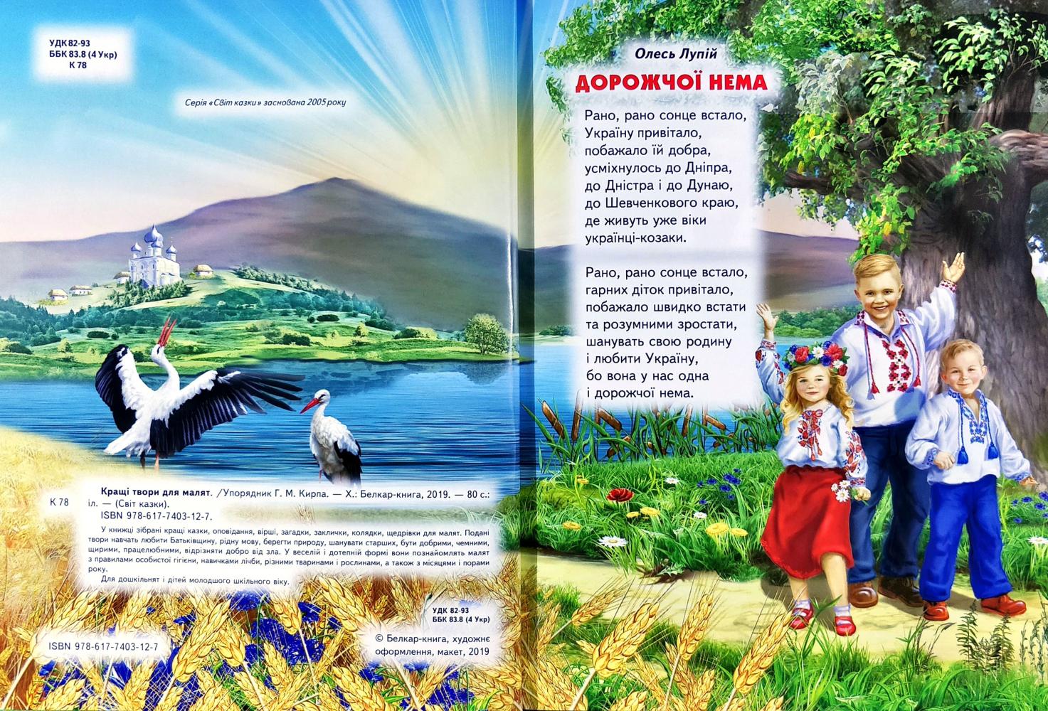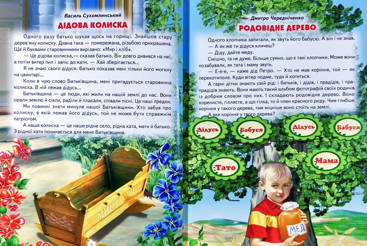 У книжці зібрані кращі казки, оповідання, вірші, загадки, за клички, колядки, щедрівки для малят. Подані твори навчать любити Батьківщину, рідну мову, берегти природу, шанувати старших, бути добрими, чемними, щирими, працелюбними, відрізняти добро від зла. У веселій і дотепній формі вони познайомлять малят з правилами особистої гігієни, навичками лічби, різними тваринами і рослинами, а також з місяцями і порами Року.