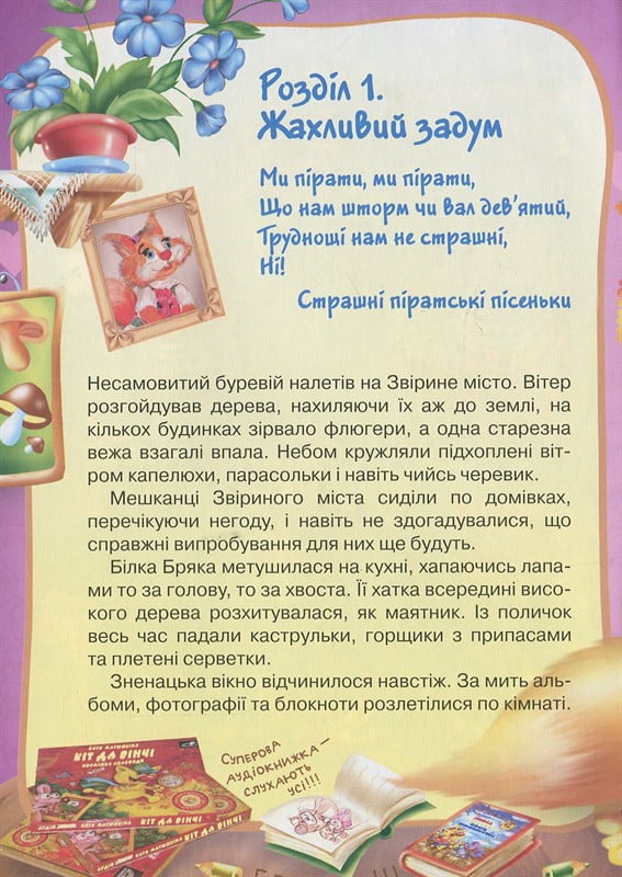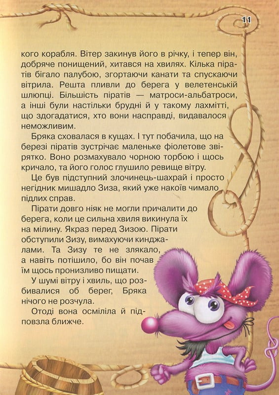До Звіриного міста прибули пірати! Вони викрали цілу купу всього-всього та ще й полонили нещасну білочку Бряку! А страшне й підступне мишадло Зиза теж, виявляється, пірат! І Зиза рушає до Мавпячого острова, аби стати там королем, знайти скарби й заволодіти ними!