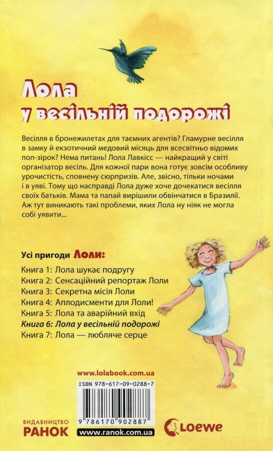 Весілля в бронежилетах для таємних агентів? Гламурне весілля в замку й екзотичний медовий місяць для всесвітньо відомих поп-зірок? Нема питань! Лола Лавкісс - найкращий у світі організатор весіль. Для кожної пари вона готує зовсім особливу урочистість, сповнену сюрпризів. Але, звісно, тільки ночами і в уяві. Тому що насправді Лола дуже хоче дочекатися весілля своїх батьків. Мама та папай вирішили обвінчатися в Бразилії. Аж тут виникають такі проблеми, яких Лола ну ніяк не могла собі уявити...