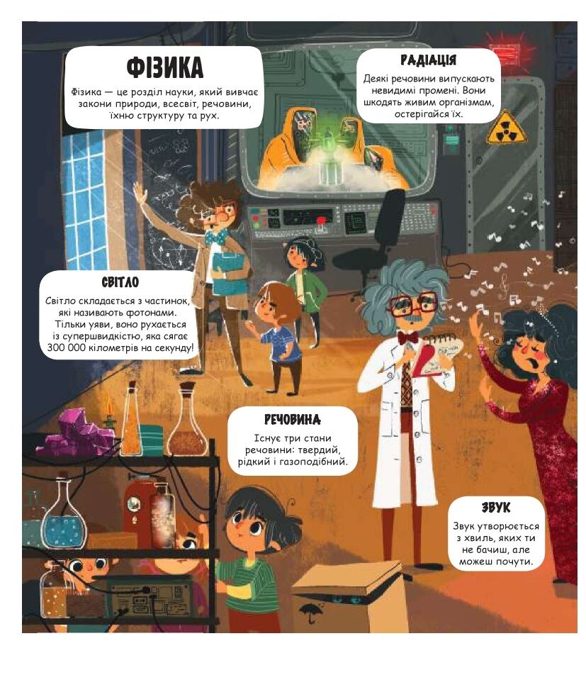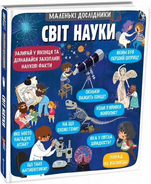 У книжці «Світ науки» юні читачі зможуть знайти цікаві факти про природні явища та технології, винаходи та дослідження. Що станеться, якщо потерти бурштин об хутро? Як побачити тварину, яка жила мільйони років тому? Чи бувають бактерії корисними? Як можна вмістити ціле місто на долоні, і коли народилося наше Сонце? Відповіді на ці запитання читачі знайдуть на сторінках цієї книжки. Зрозумілий виклад, яскраві ілюстрації та інтерактивні елементи-віконечка зроблять першу зустріч зі світом науки не лише пізнавальною, а й веселою.
