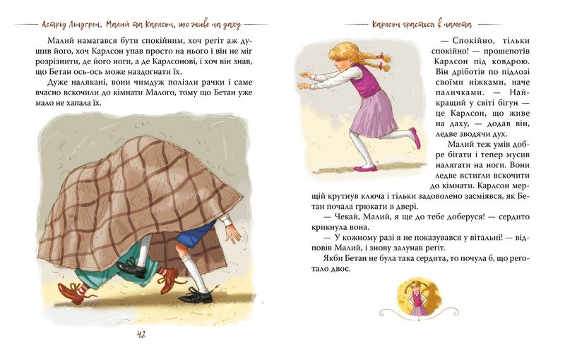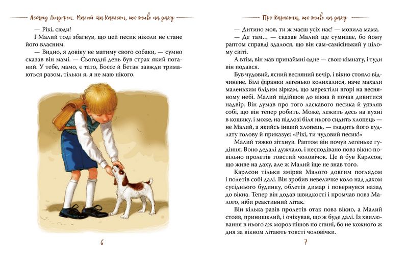 «У місті Стокгольмі…» — з цієї фрази розпочинається одна неймовірна повість. Так от, живе в цьому цілком звичайному місті звичайнісінький хлопчик — Малий. А на даху його будинку мешкає аж ніяк не звичайний чоловічок з моторчиком на спині — Карлсон. Він вміє літати і придумує безліч витівок і жартів.