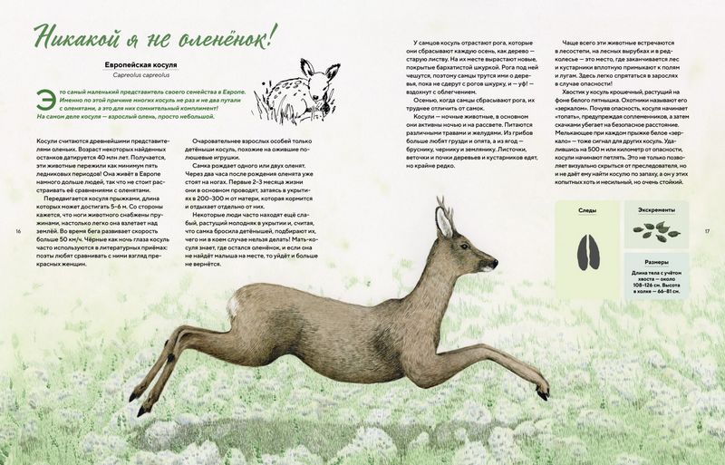 На нашей планете есть место и для людей, и для огромного количества разных животных. Животные — ближайшие соседи человека, вместе с ними мы существуем на Земле с древнейших времён. Соседство людей с животным миром составляет хрупкий баланс, который очень важно сохранить. Ведь невозможно представить нашу жизнь без животных! В этой книге вы найдёте хорошо всем известных животных, которых можно встретить в лесу — зайца, волка, медведя, лису и кабана, — а также более редких, например муфлона, ондатру и горностая.