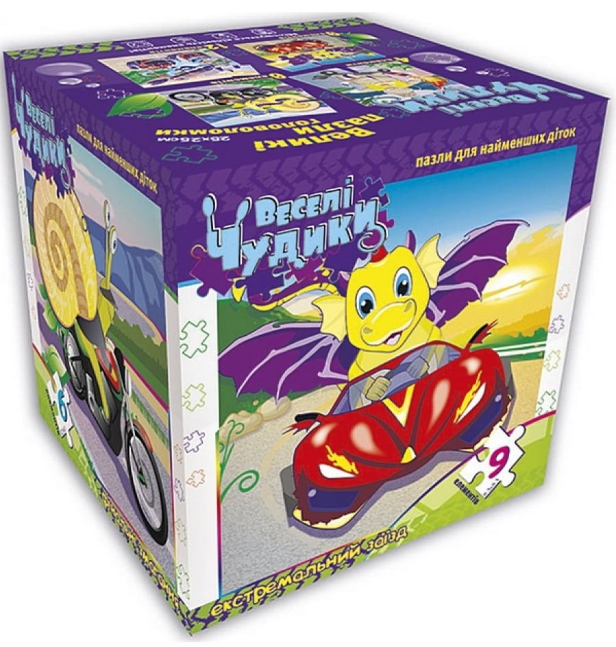 Картинки з пригодами кумедних героїв малюк зможе зібрати за допомогою пазла «Веселі чудики». У наборі чотири пазла різного ступеня складності - від 2х2 до 4х3, розміри елементів - від 12.5 до 6.2 см. На яскравих, кольорових картинках показані герої на незвичайних транспортних засобах. У зібраному вигляді буде відмінною прикрасою дитячої.