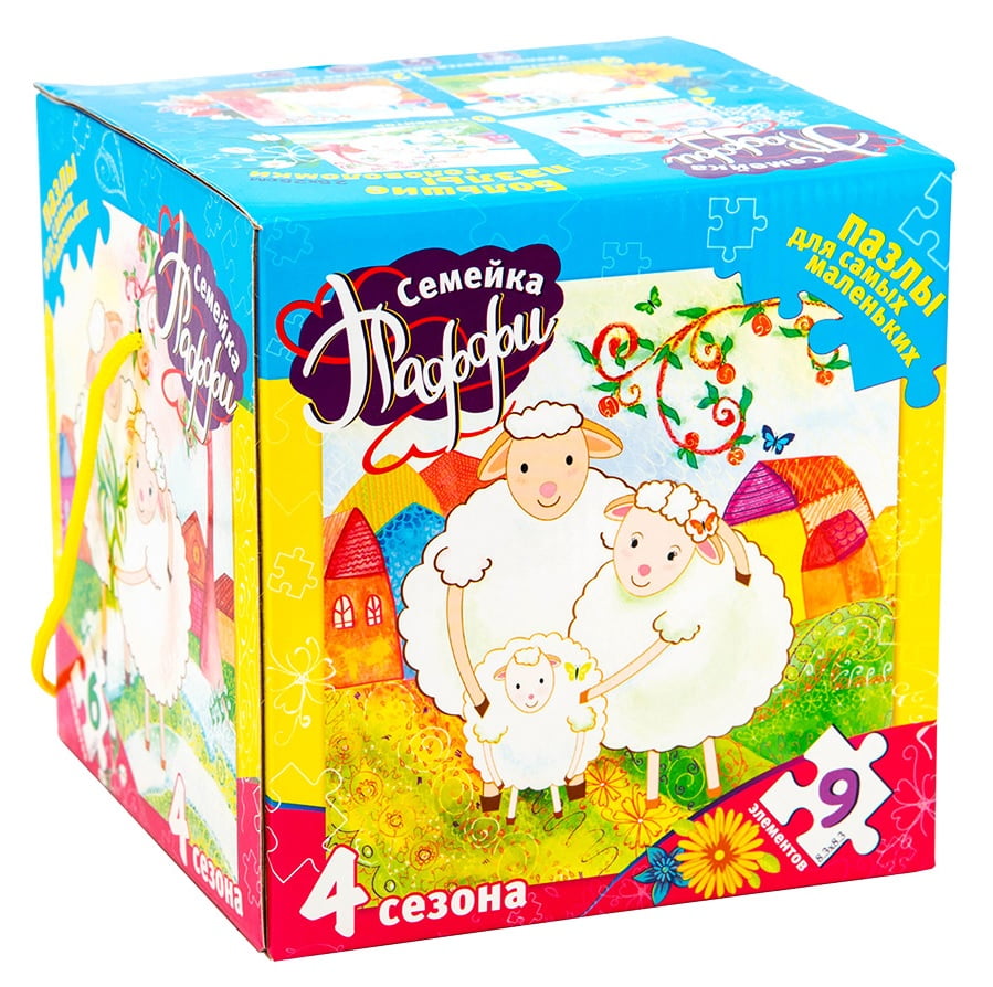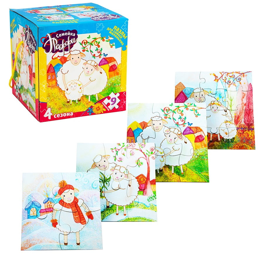 Забавные картинки из жизни семейства овечек Паффи малыш сможет собрать с помощью пазла «Семейка Паффи». В наборе четыре пазла разной степени сложности – от 2х2 до 4х3, размеры элементов – от 12.5 до 6.2 см. На ярких, цветных картинках показаны приключения героев в разные времена года. В собранном виде будет отличным украшением детской.