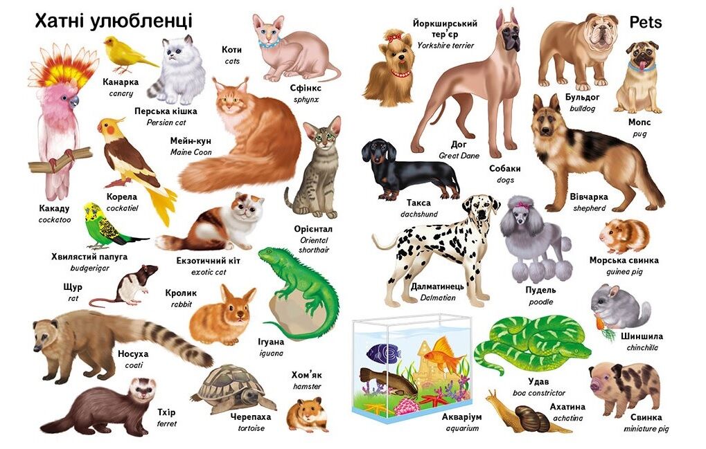 Які мають бути перші слова англійською? Тут також є своє «золоте» правило — те, що малюк бачить навколо себе, у дитячих книжках, мультиках, фільмах, це й будуть його перші слова. Адже коли йому зрозуміло, про що і про кого мовиться, тоді семантичне значення цього образу легко вкладається в його свідомості.Тварини — найоптимальніша і найвдаліша тема з цього погляду. Вони дітям цікаві, вони їх уже бачили, а якщо й не бачили, то познайомляться, що додатково розширить їхні знання. Крім того, тема тварин однаково добре підходить і хлопчикам, і дівчаткам.