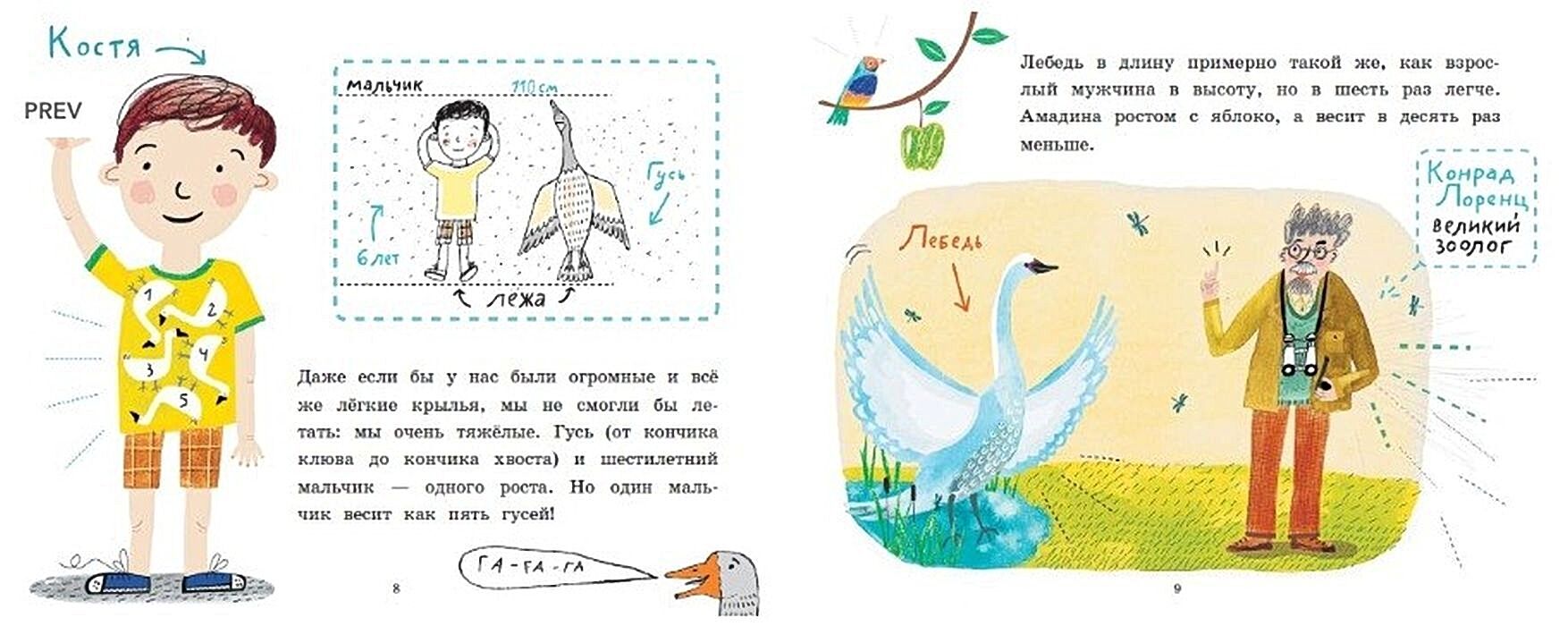 Книжка задумывалась и делалась так, чтобы читать и рассматривать ее было интересно всем членам семьи. Взрослые и старшие дети наверняка оценят остроумные иллюстрации Алины Рубан. А шести- и семилетки, которым книга непосредственно адресована, не только получат ответ на вопрос, как летают птицы, но и смогут прочитать текст самостоятельно. Мы сделали все так, чтобы ребенку захотелось прочитать самому: подобрали специальный шрифт, разработали удобный макет, нашли художника, который все понимает и про птиц, и про детей, и про Карманного Ученого.