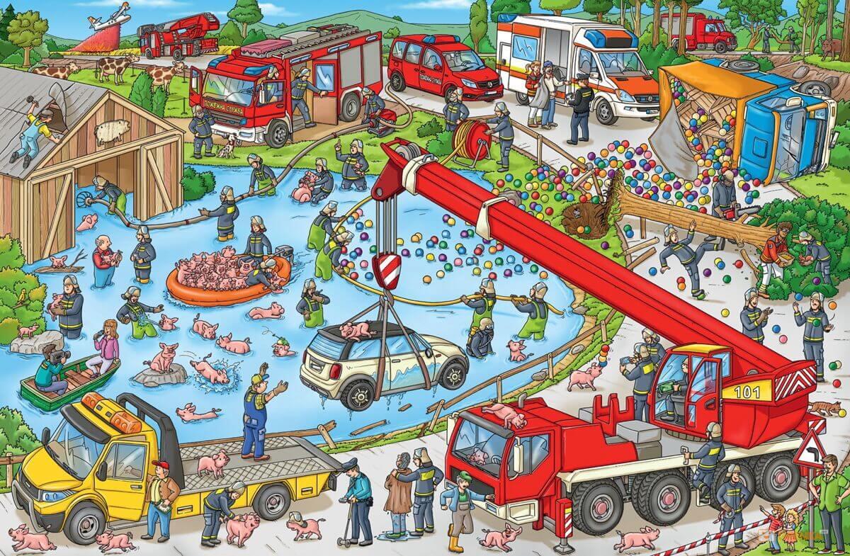 Будні вогнеборців — зовсім не буденні. На сторінках цього віммельбуху оживає безліч пригод пожежної команди!