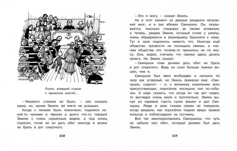 Весёлая повесть про Эмиля из Лённеберги, которую написала замечательная шведская писательница Астрид Линдгрен, а на русский язык блистательно пересказала Лилианна Лунгина, полюбилась и взрослым и детям всей планеты. Этот вихрастый мальчуган — ужасный озорник, он и дня не проживёт, не напроказничав. Ну кому придёт в голову гонять кошку, чтобы проверить, хорошо ли она прыгает?! Или надеть на себя супницу? Или поджечь перо на шляпе у пасторши? Или поймать в крысоловку родного отца, а поросёнка накормить пьяными вишнями?..